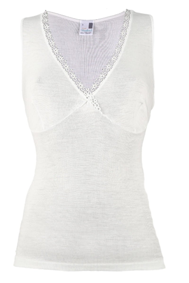 Canotta Spalla larga intima da donna Anemone in pura lana vergine con reggiseno- Tubolare leggero e trattamento irrestringibile