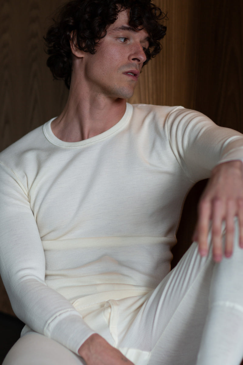 Men's long sleeve made from a DOUBLE fabric on the skin 100% cotton and on the outside 60% wool 40% acrylic