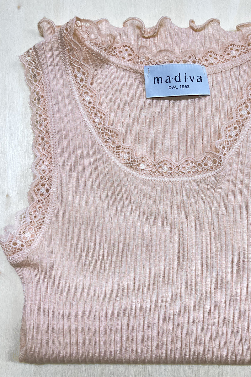 Wide shoulder tank top in pleats 85% extra fine merino wool and 15% silk.