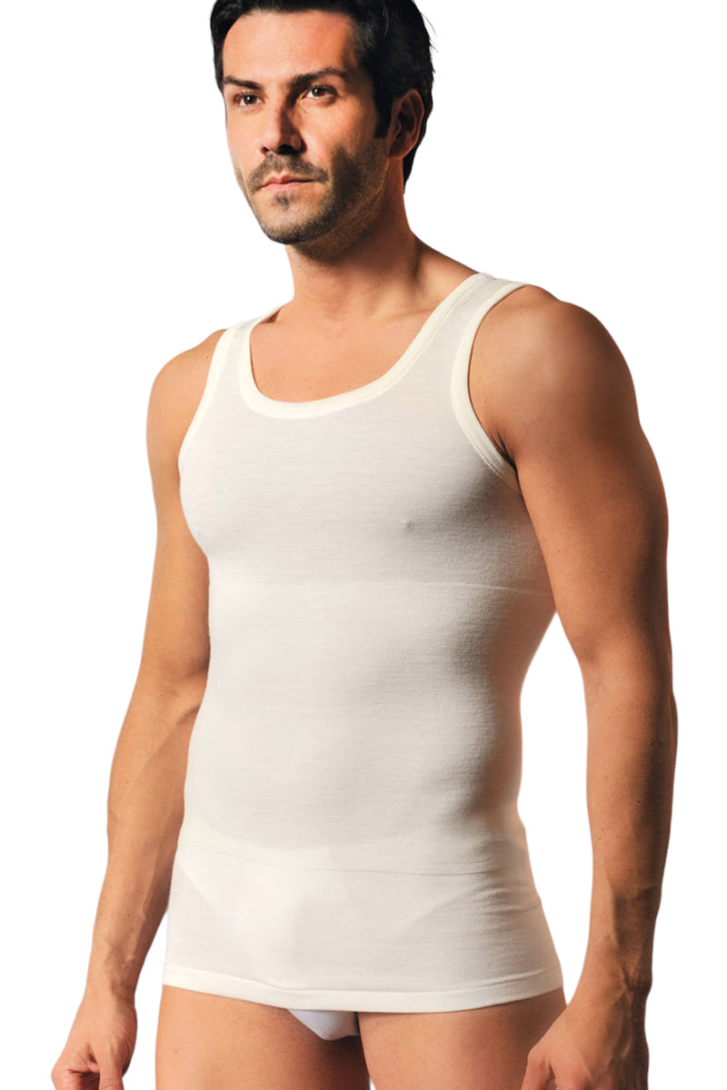 Men's Sleeveless turtleneck with built-in belt Dorlestan Bayer. The weaving is done in a special way to prevent the knit from rolling up. Even after numerous washings it does not lose its original elasticity.