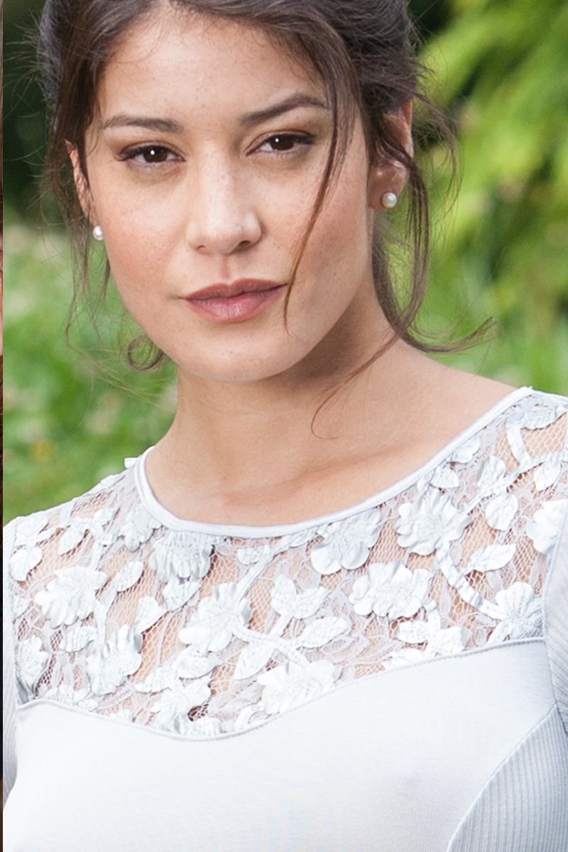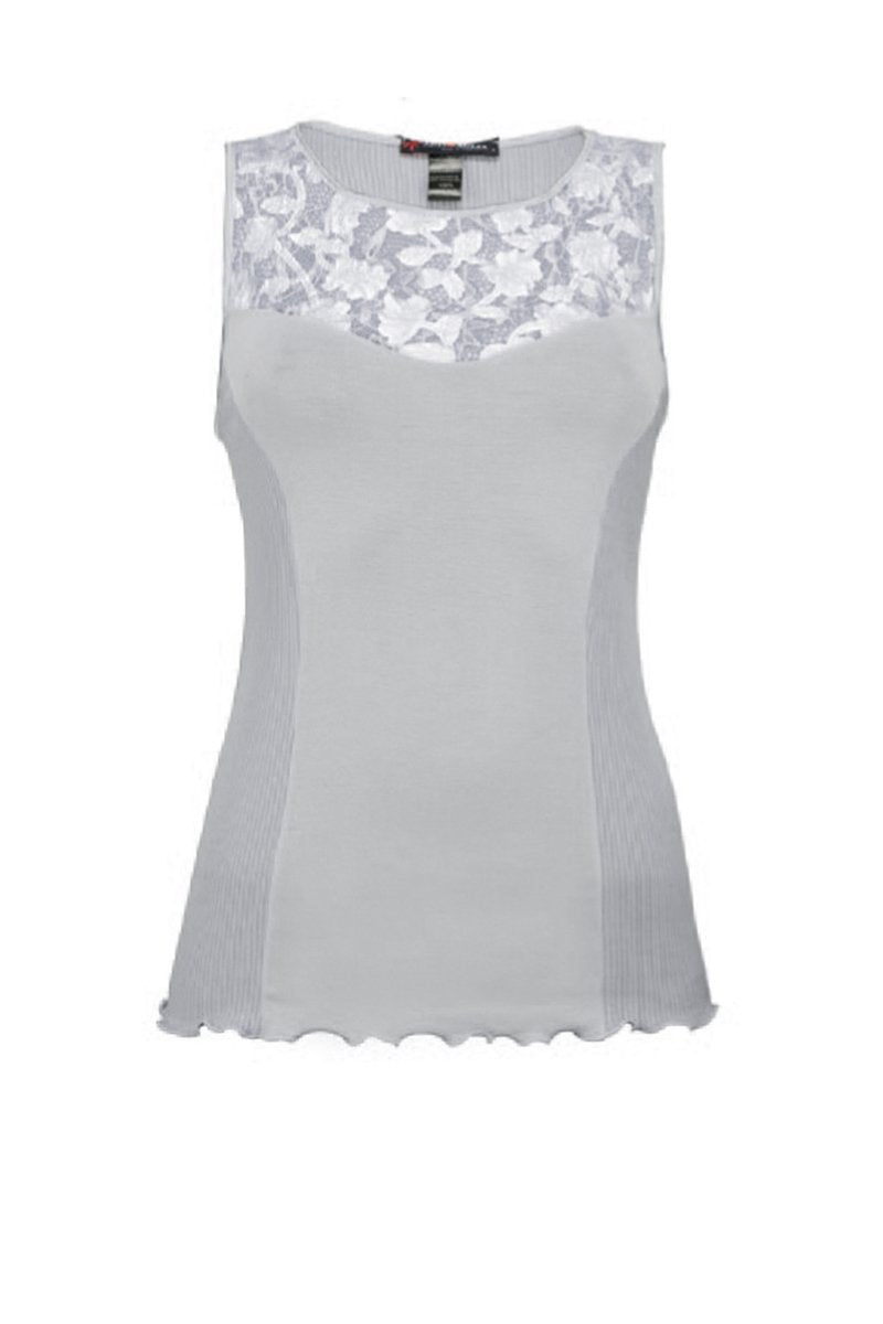 This refined Sleeveless in cotton lisle alternates smooth and ribbed to give the garment a better fit. A shower of leather laser flowers make up the front in a romantic lace.
