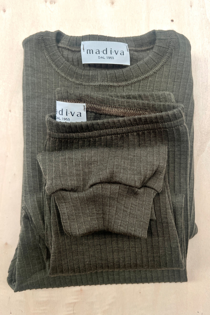 Pyjamas in 85% wool and 15% pleated silk. A warm, comfortable and cosy pyjama perfect for the cold seasons.