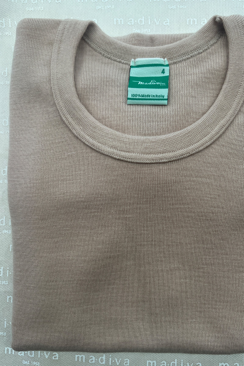 Men's short sleeve in heavy tubular fabric 80% virgin wool and 20% polypropylene.
