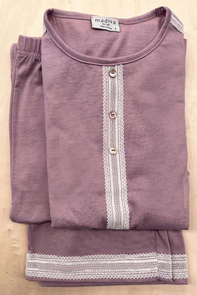 Pigiama da donna Perla in cotone- Impreziosito da balzina di pizzo a contrasto ESCLUSIVA ONLINE