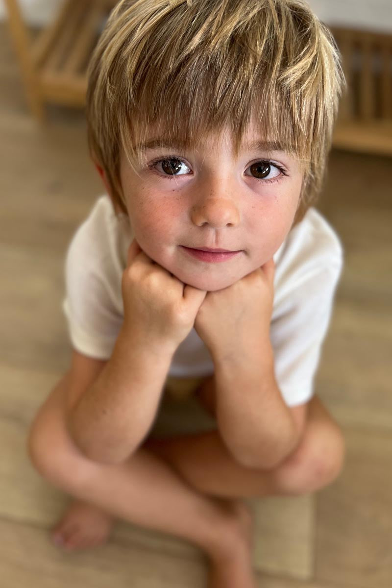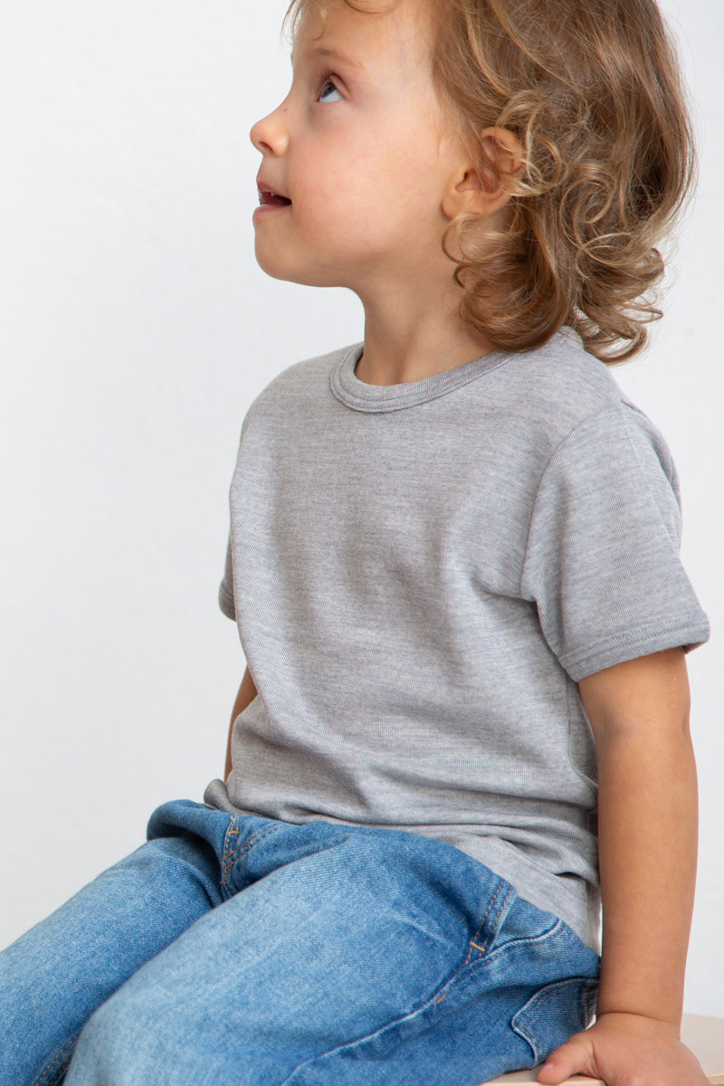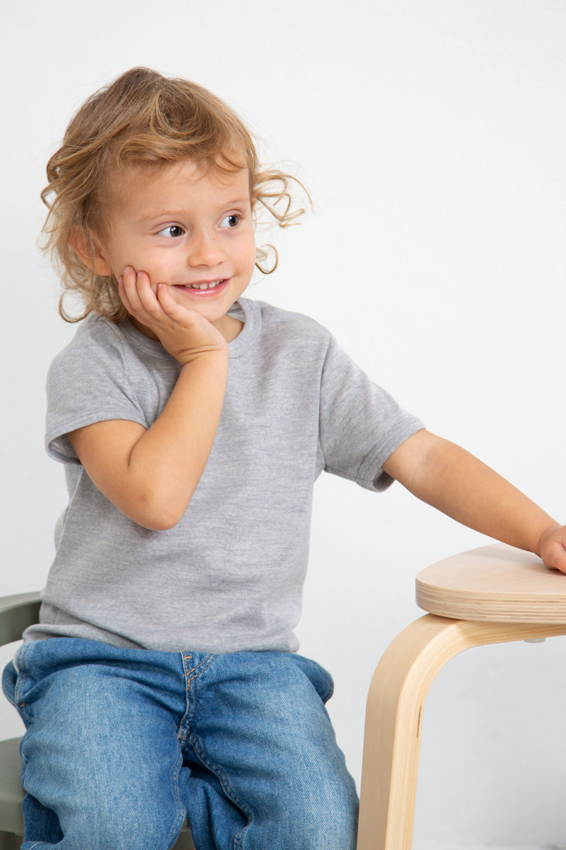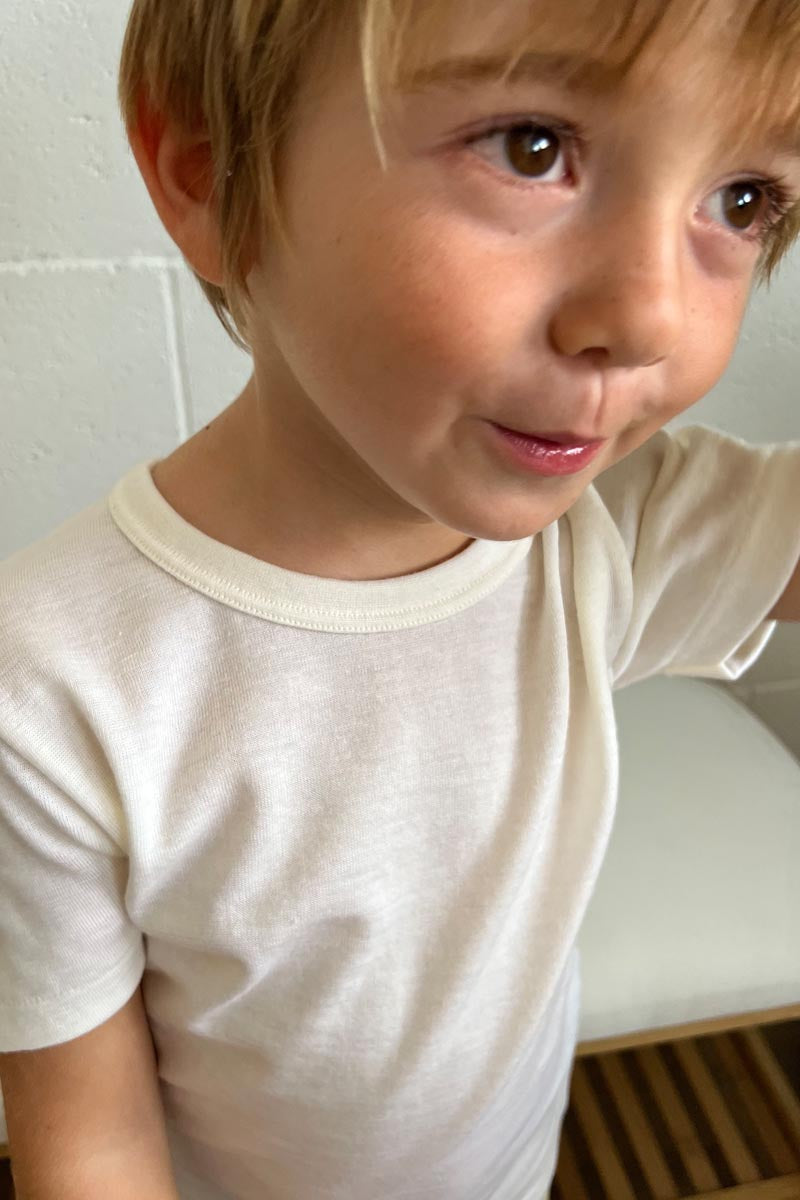 Maglietta intima bambino Trottola in lana e seta - Delicata sulla pelle e mezza manica